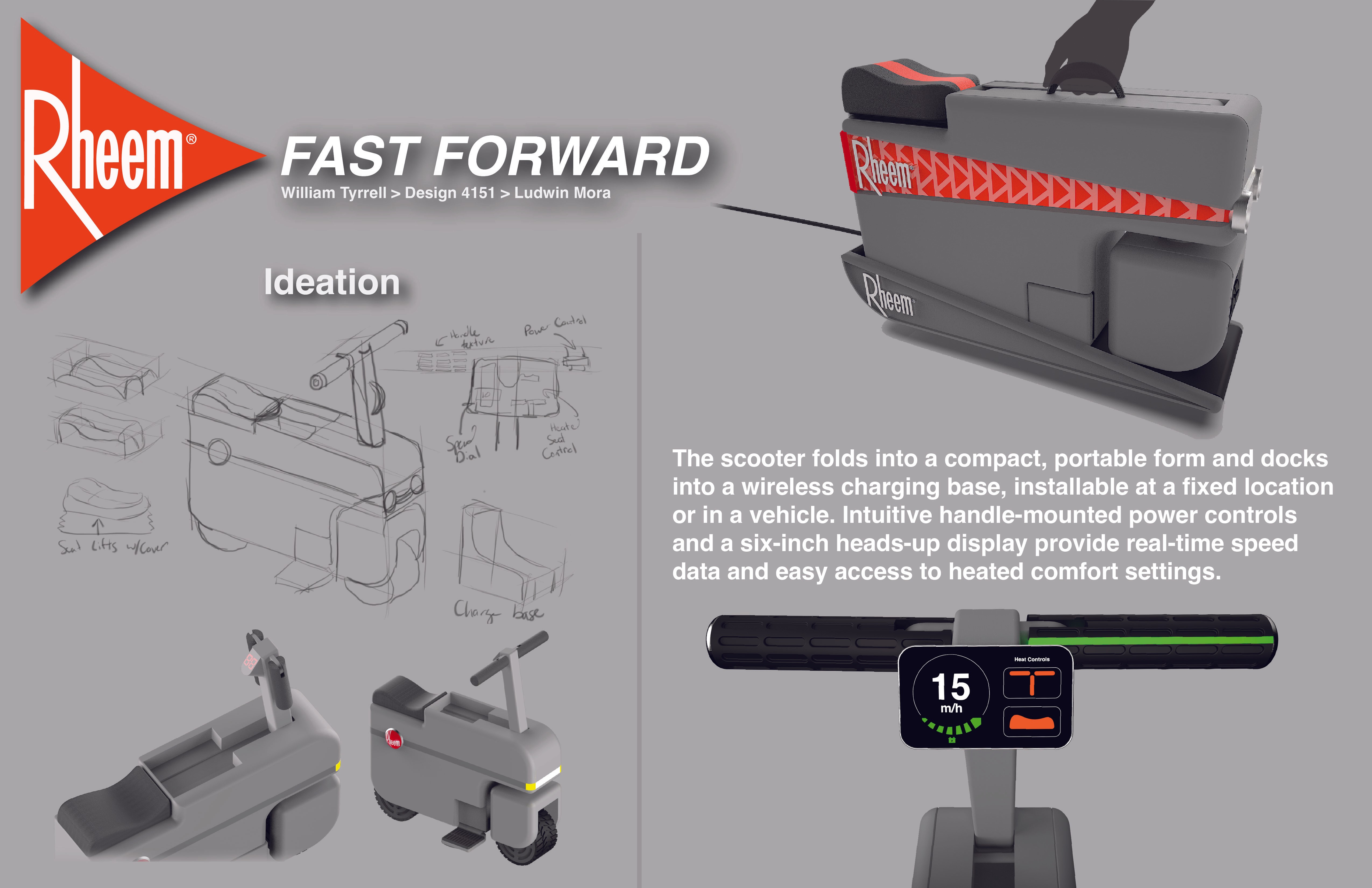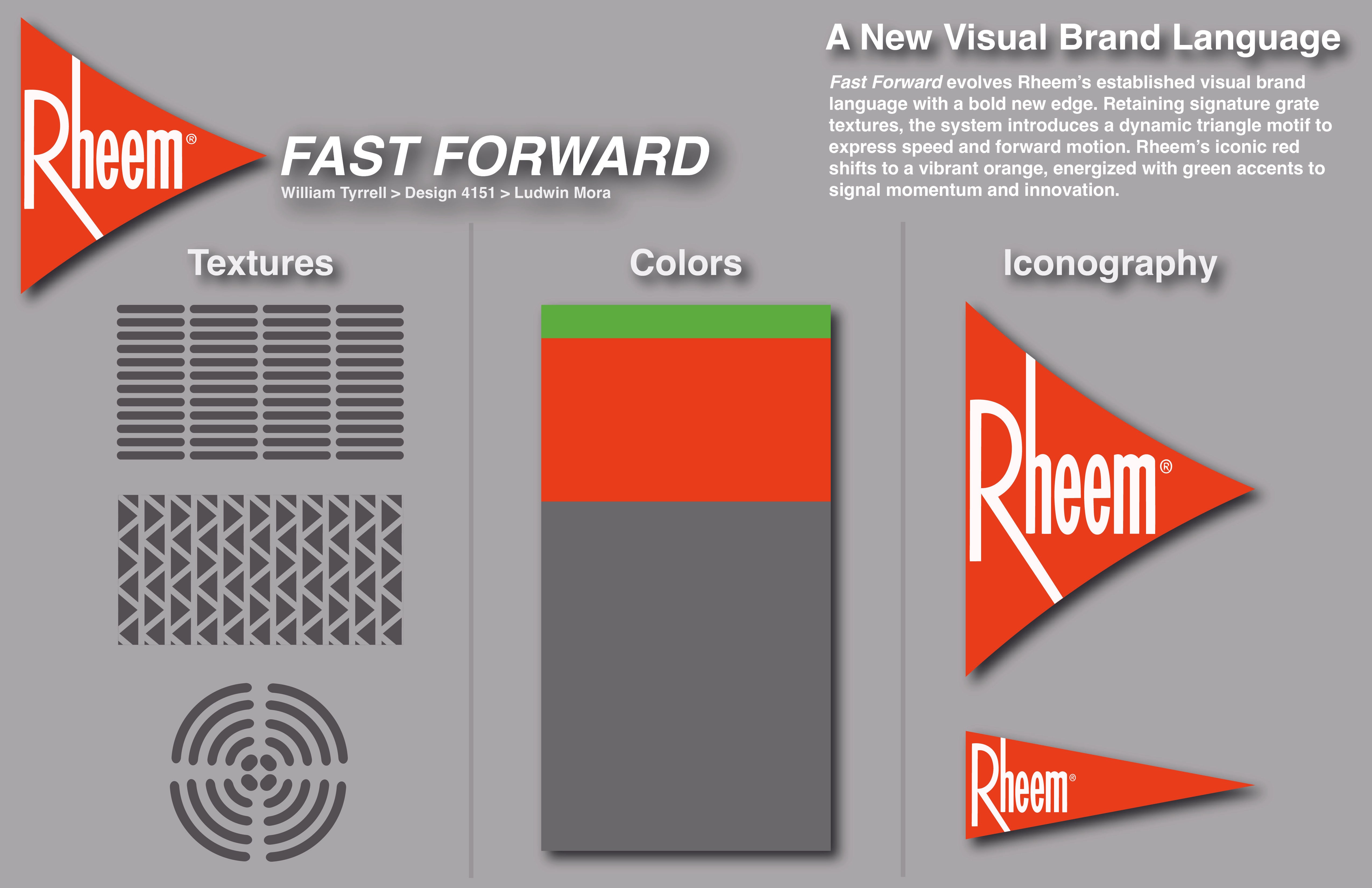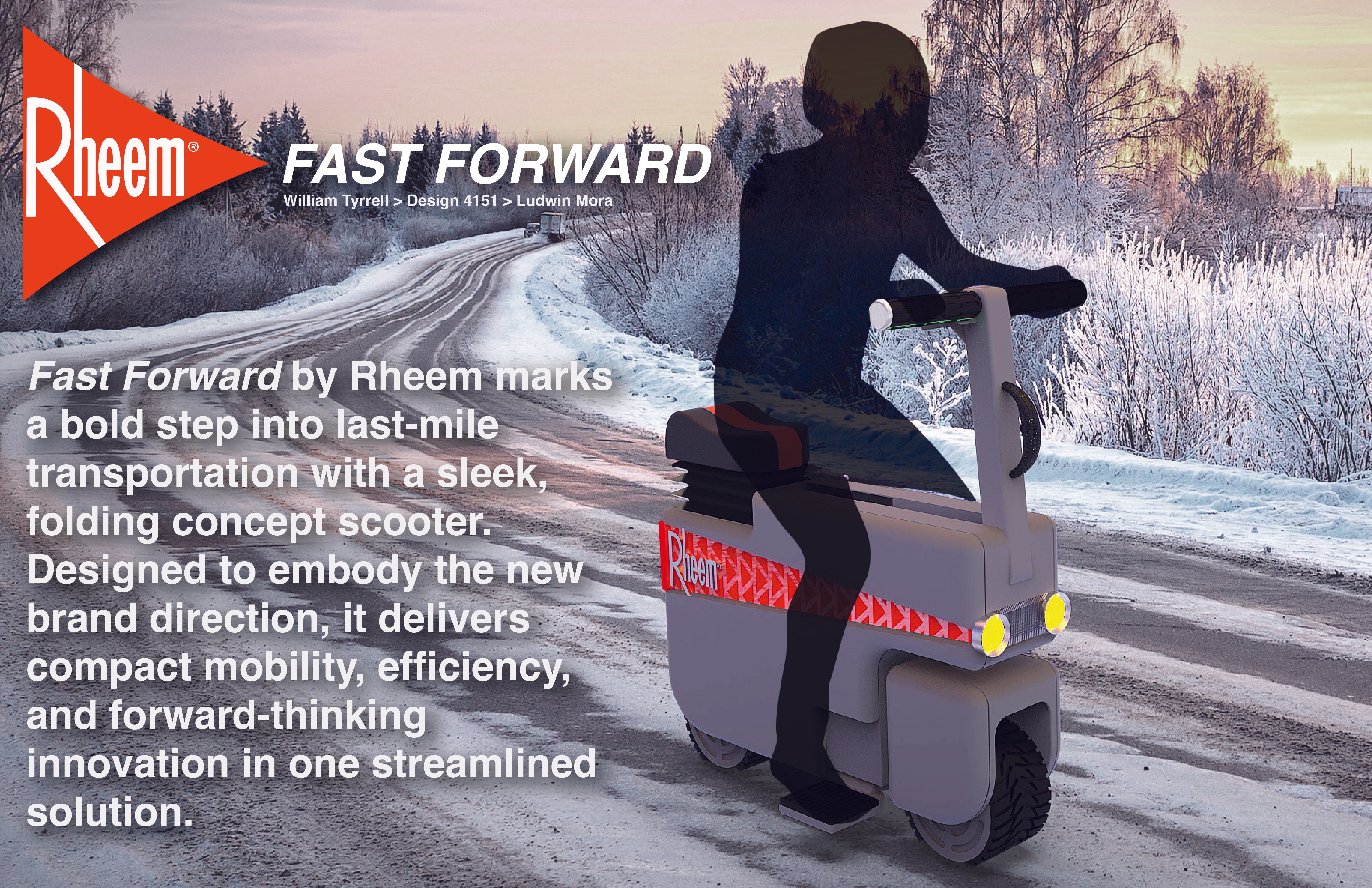 I developed Fast Forward, a branding concept for Rheem that introduces a personal service suitcase-style scooter and a refreshed brand language for a new service initiative.